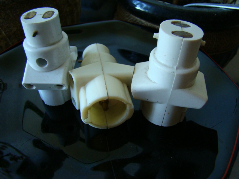 Prise voleuse en porcelaine et bakélite ancienne Fonctionne Frs: 10. Vente de prises, de rallonges et interrupteurs pour camping car, caravane et bateau à PETIT PRIX. Câble électrique conducteurs vendu au métres linéaire.